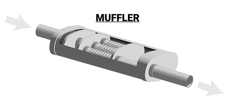 Mufflers have been around since the early cars were built and use a sound frequency theory developed nearly a half century before the automobile was introduced. The theory states that certain sound frequencies can be cancelled out within a specifically-shaped tube or chamber.
